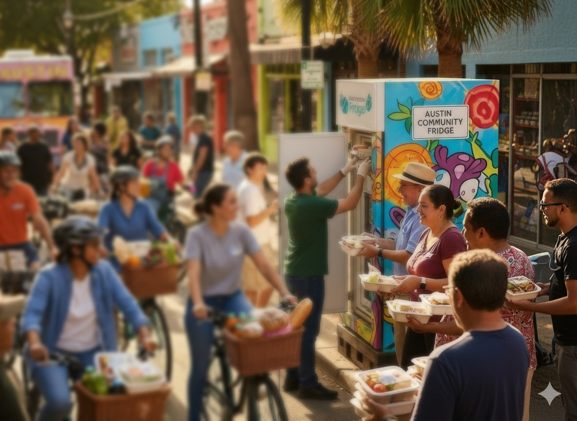 See Our Donation PageDonate products or services that directly supply our partner projects, from prepared meals for ATX Free Fridge, to equipment like the e-bikes from Momentum for Austin Bicycle Meals. Every bit helps!
